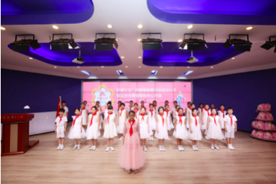 会议开始前,尊凯实业集团为参会的中关村二小学生带来了礼物,孩子们在翻阅中如同找到知己一般,喜悦溢于言表,因为她们看到了可爱的爱心大使元七七同学。当嘹亮的歌声响起,学生代表们在国旗下歌唱、宣言,散发出阵阵青春朝气,也预示着发布会开始。